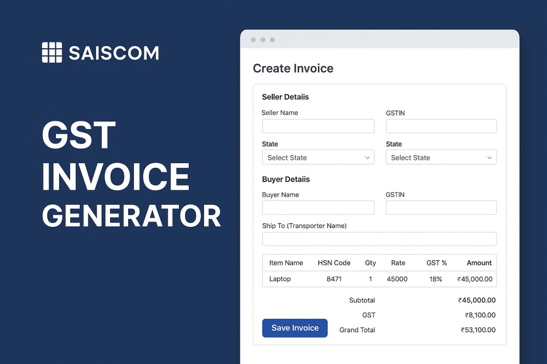 saiscom present GST invoice generator to business owner for helping of business growth free.